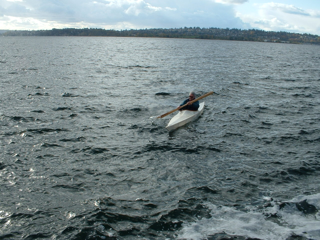 Today we finally hit the water. I didn't stay out long. The water was choppy and I wasn't really dressed right for a longer paddle. But hey, it actually floats! I'll be back out in a day or two for a longer stay, of that you can be sure.
