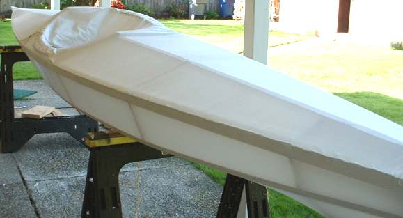 The skin is stapled onto the frame and both hull and deck are tight as a drum.