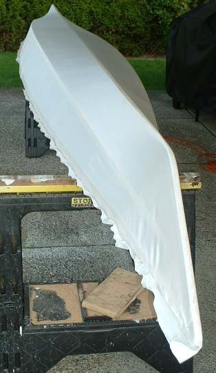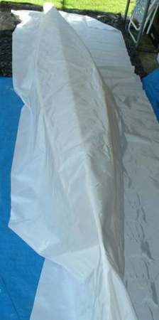 Today is the day! We lay out the 9 oz. nylon over the frame and staple it to the ends. Then it's back to the sawhorses to staple and stretch the bottom, followed by stapling and stretching the decks.