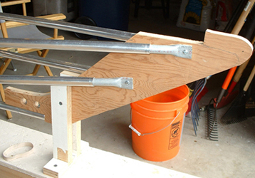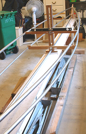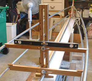 This little gizmo I call a stringer tree. It allows one to move the stringers around until you like what you see. Notice the level. This makes it easy to align everything.