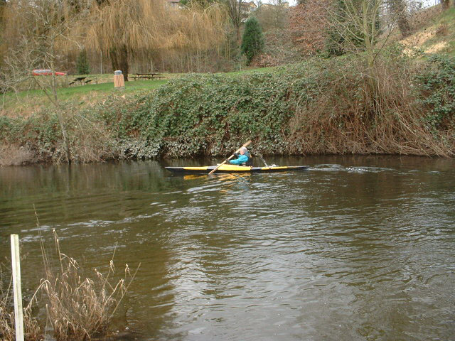No time to loll around! The bow wants to turn down stream and I have to step on the gas to get it under control. It doesn't take long to get a workout in this current.